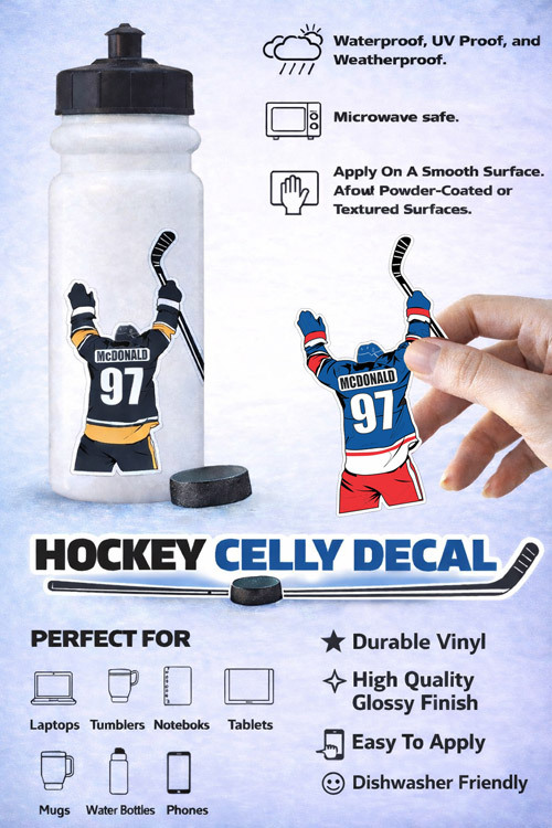Built for the Game: Waterproof, weatherproof, and totally dishwasher friendly — these personalized hockey stickers survive all the action.