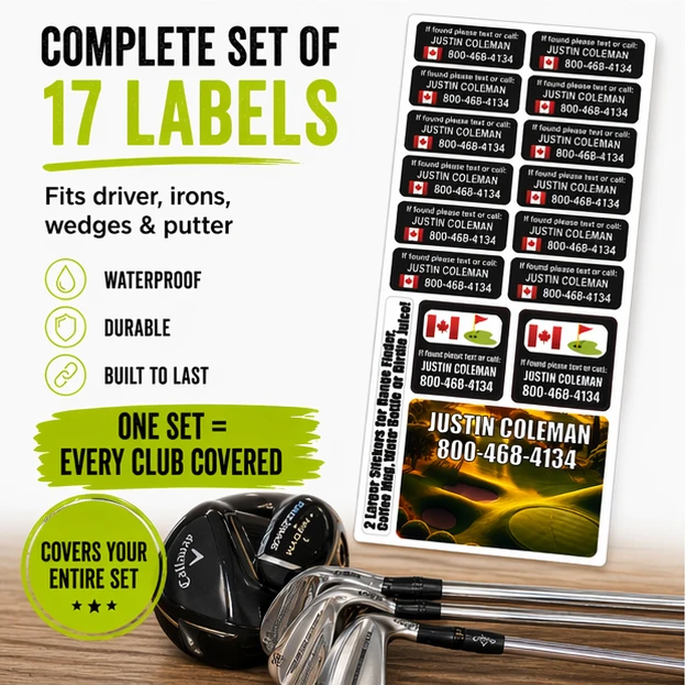These durable, waterproof labels are designed to stay on your clubs round after round—rain, heat, and constant use.